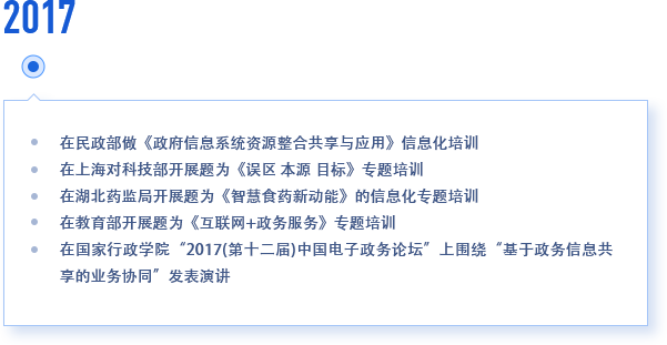 北京大学政治学博士,参与《国家电子政务“十二五”规划中期评估报告》、《基于云计算的电子政务公共平台国家标准》、《国家食品安全平台有关社会的需求研究》等国家和地方有关电子政务的政策制定和标准编制工作。