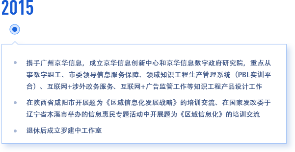 主要承担过《“十一五”国家信息安全建设规划》《“十一五”国家电子政务建设规划》《国家计算机信息系统灾难恢复的问题与对策》《“十二五”国家政务信息化工程建设规划》《“十三五”国家政务信息化工程建设规划》《政务、产业、社会三位一体的智慧城市顶层设计框架》《国家关键信息基础设施安全保护战略想定和工程创新》和“国家数字化转型的路径选择与需求分析”等方面的研究、编制、工程顶层设计,三十多个中央和国务院部门的信息化工程项目指导。